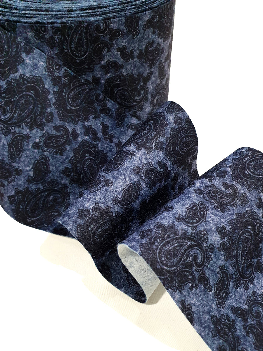 The exquisitely designed of daynamic fish shape pattern with black color finly match on denim blue felt.